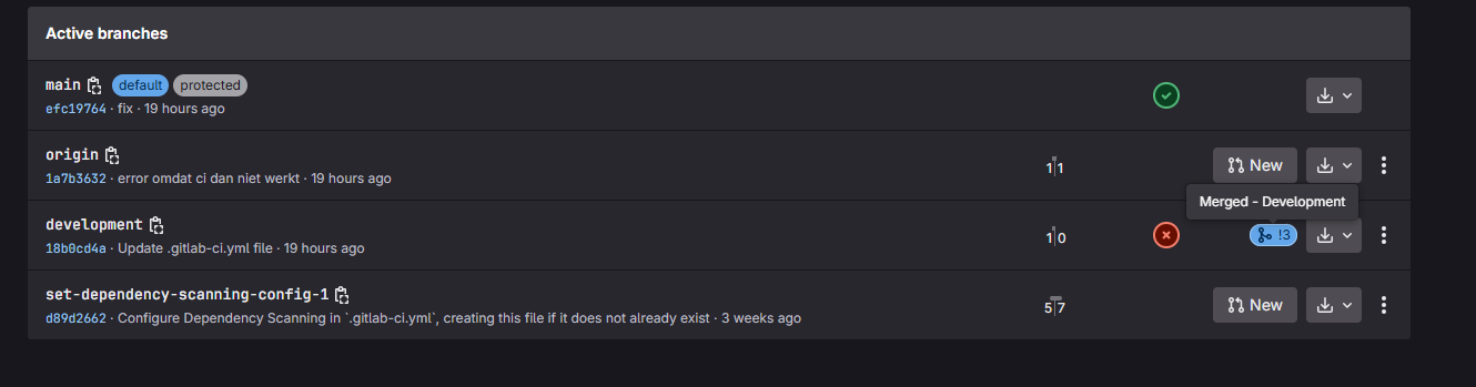 Door gebruik te maken van een development en een main branch kan er getest worden in de development branch zonder impact op productie omgeving. En door gebruik te maken van CI/CD kan een change worden getest voor dat het gemerged wordt met de main branch. |