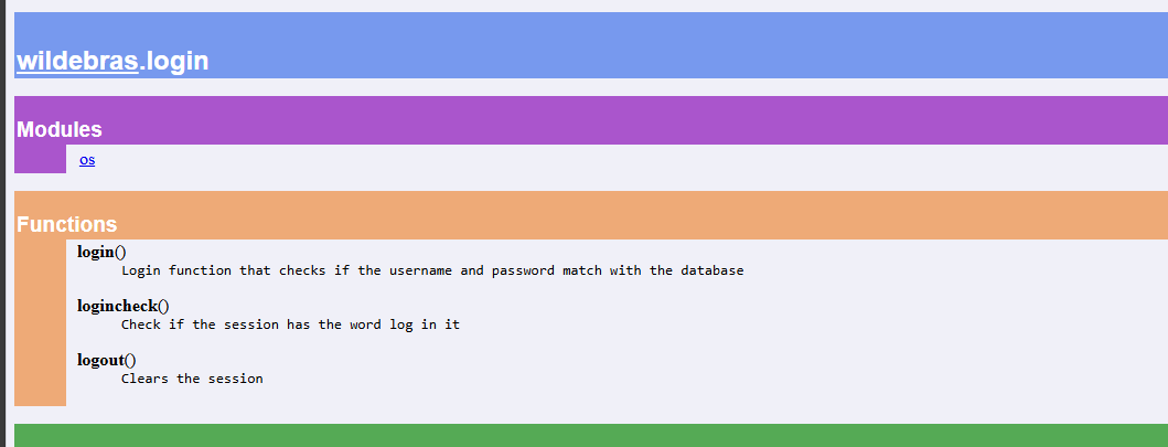 | De documentatie van de code is in het engels zodat andere gebruikers buiten ons door kunnen gaan met het project. Het is hierbij ook een standaard om 1 taal te gebruiken voor je documentatie. Er is gebruik gemaakt van Pydocs op basis van feedback van docenten en omdat dit ook overzichtelijker is. |