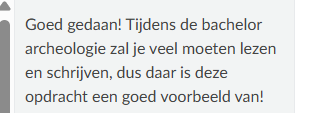 Ik heb er voor gekozen om niet door te gaan met de opleiding bij de HVA, dat ik naar de bestuur van de HVA zelf moest gaan en de onderwijsinspectie is niet wat ik verwacht van klachbehandelingen. Ook was de reactie na dit ook heel erg disrespectvol zo had een lid van examencomissie mij gevraagd (niet letterlijk) "Maak je misbruik van de situatie" hier had de examencomissievoorzitter wel ingegrepen maar dat dit de gedachte is van docenten bij zulke situatie geeft mij geen veilig gevoel om door te gaan. Ik heb hierdoor me aangemeld voor de Archeologie opleiding en ook wat toetsen gemaakt en daaruit kwam een score van 39/40. |